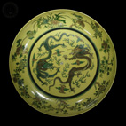清康熙 御制黄釉龙纹大盘